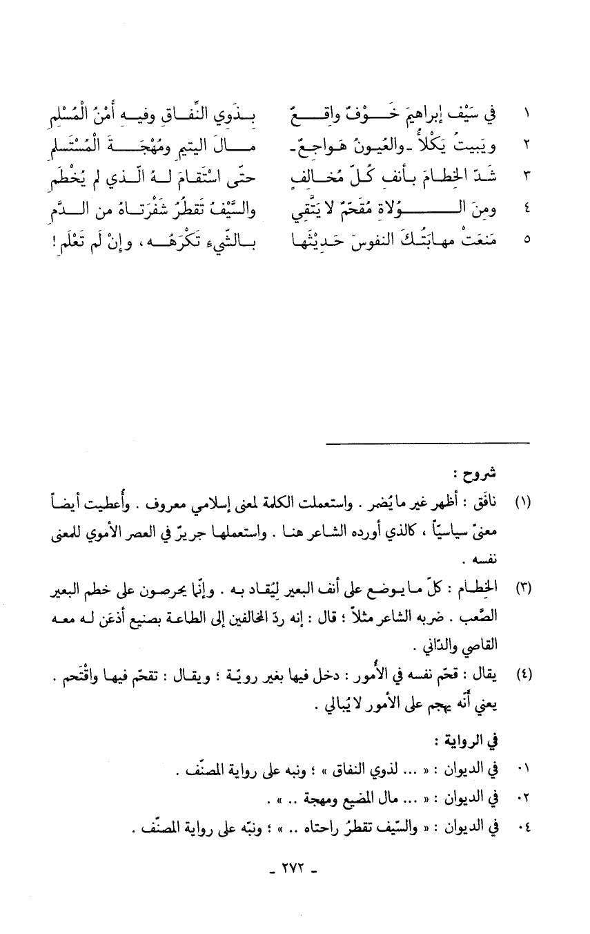 (فِي سيف إِبْرَاهِيم خوفٌ واقعٌ ... بذوي النِّفَاق وَفِيه أَمن الْمُسلم)
