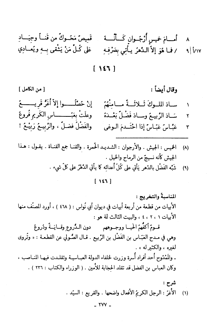 (عَبَّاس عباسٌ إِذا احتدم الوغى ... وَالْفضل فضلٌ وَالربيع ربيع)