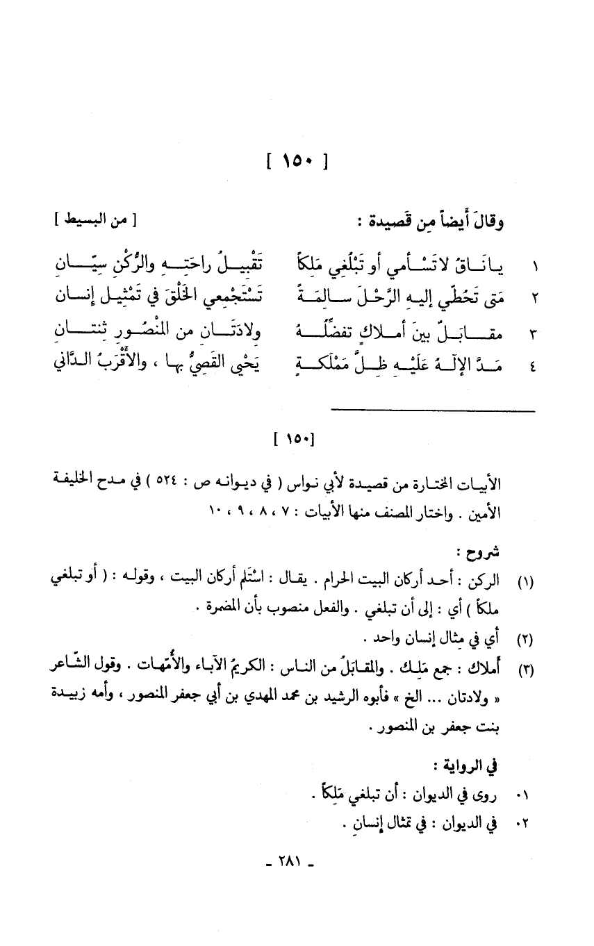 (يَا ناق لَا تسأمي أَو تبلغي ملكا ... تَقْبِيل رَاحَته والركن سيان)