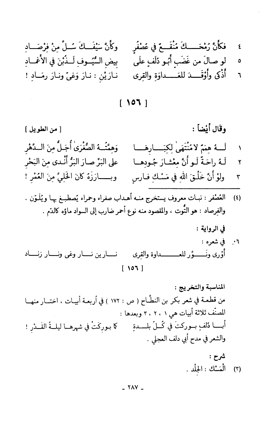 (فَكَأَن رمحك منقعٌ فِي عصفرٍ ... وَكَأن سَيْفك سل من فرصاد)