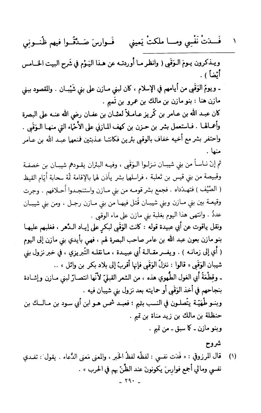 (فدت نَفسِي وَمَا ملكت يَمِيني ... فوارس صدقُوا فيهم ظنوني)