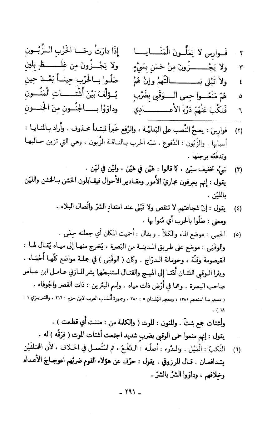 (فوارس لَا يملون المنايا ... إِذا دارت رَحا الْحَرْب الزبون)