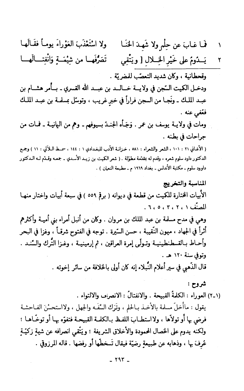 (فَمَا غَابَ عَن حلمٍ وَلَا شهد الْخَنَا ... وَلَا استعذب العوراء يَوْمًا فَقَالَهَا)
