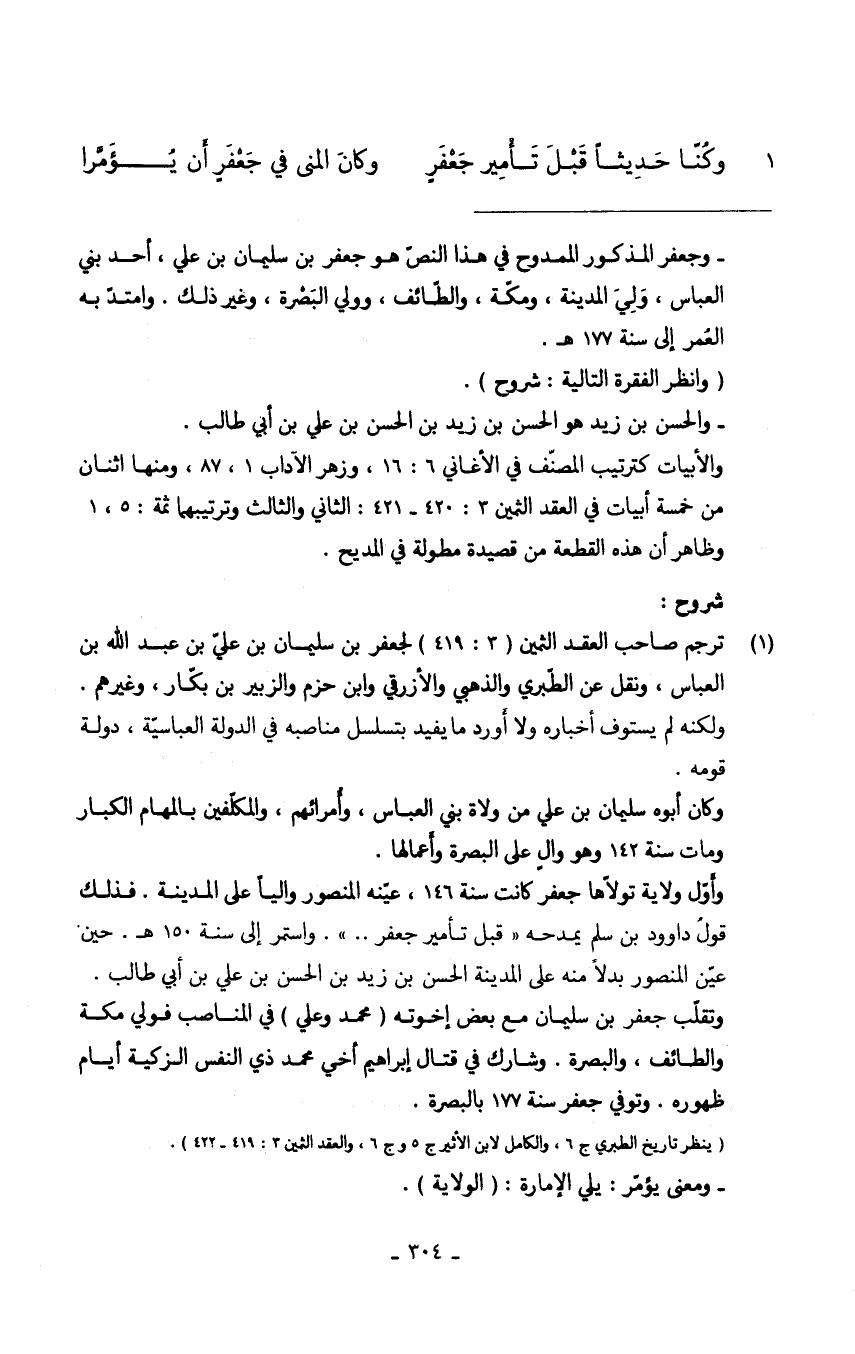 (وَكُنَّا حَدِيثا قبل تأمير جعفرٍ ... وَكَانَ المنى فِي جعفرٍ أَن يؤمرا)