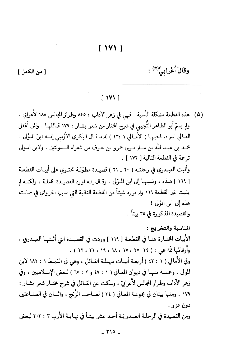 وَقَالَ أَعْرَابِي // (من الْكَامِل) //
