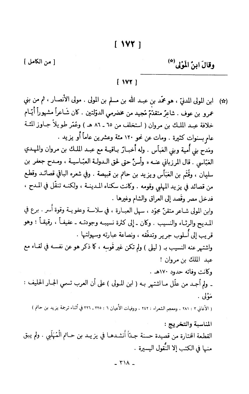وَقَالَ ابْن الْمولى // (من الْكَامِل) //