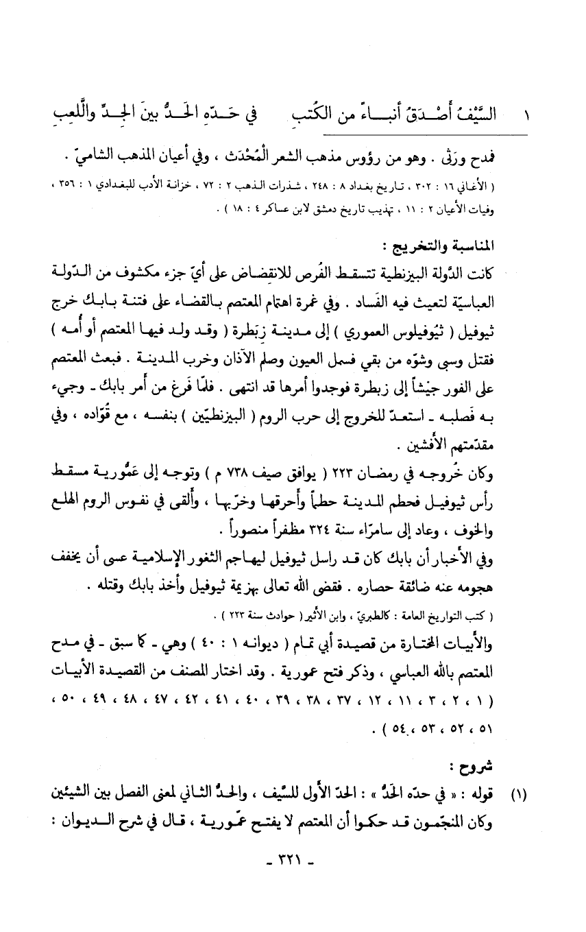 (السَّيْف أصدق أنباءً من الْكتب ... فِي حَده الْحَد بَين الْجد واللعب)