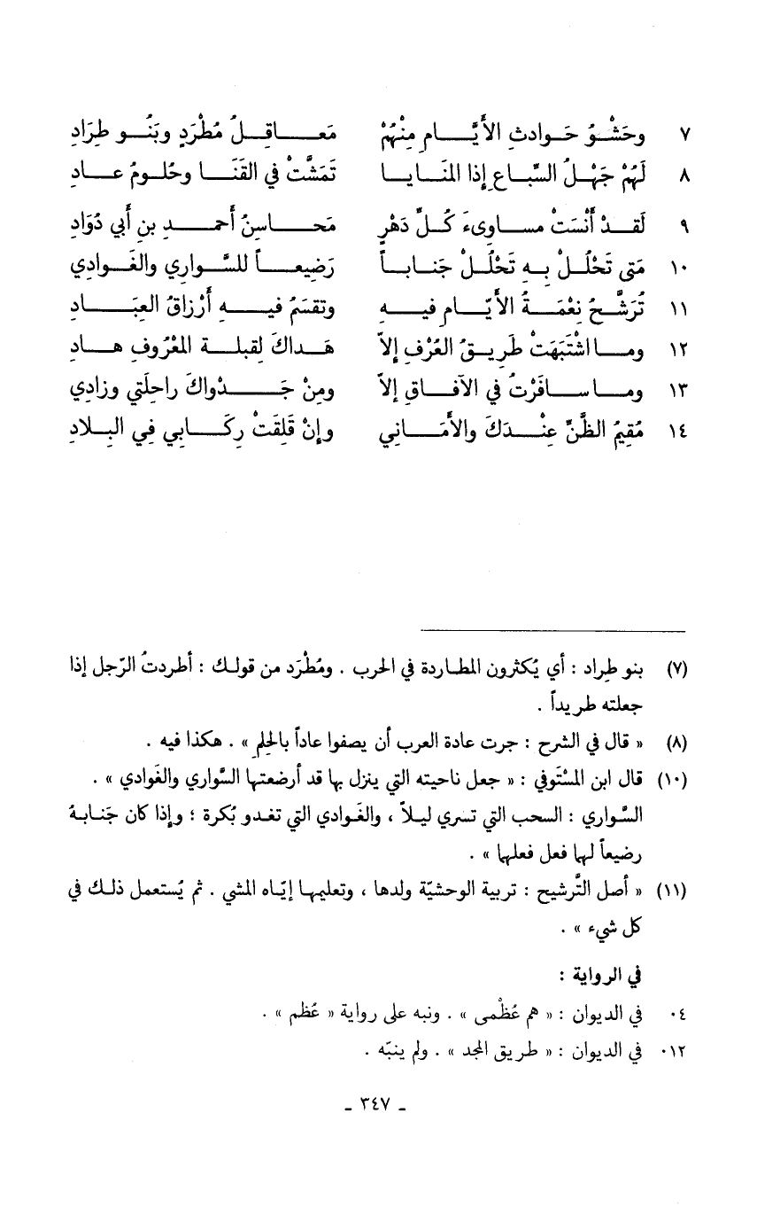 (وحشو حوادث الْأَيَّام مِنْهُم ... معاقل مطردٍ وَبَنُو طراد)