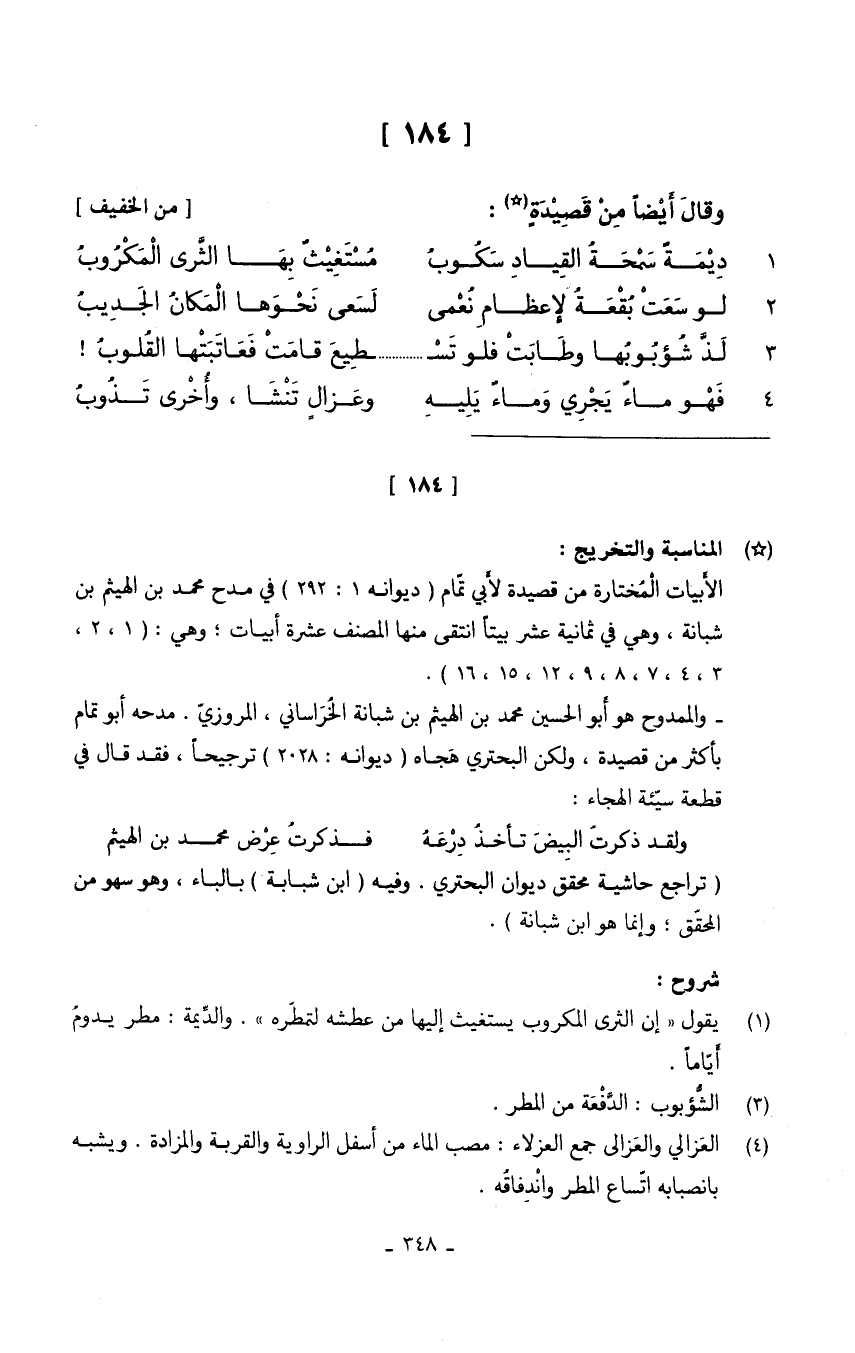 (ديمةٌ سَمْحَة القياد سكوب ... مستغيث بهَا الثرى المكروب)