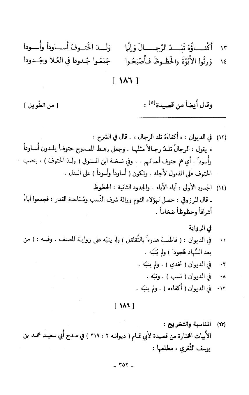 (ورثوا الْأُبُوَّة والحظوظ فَأَصْبحُوا ... جمعُوا جدودا فِي الْعلَا وجدودا)
