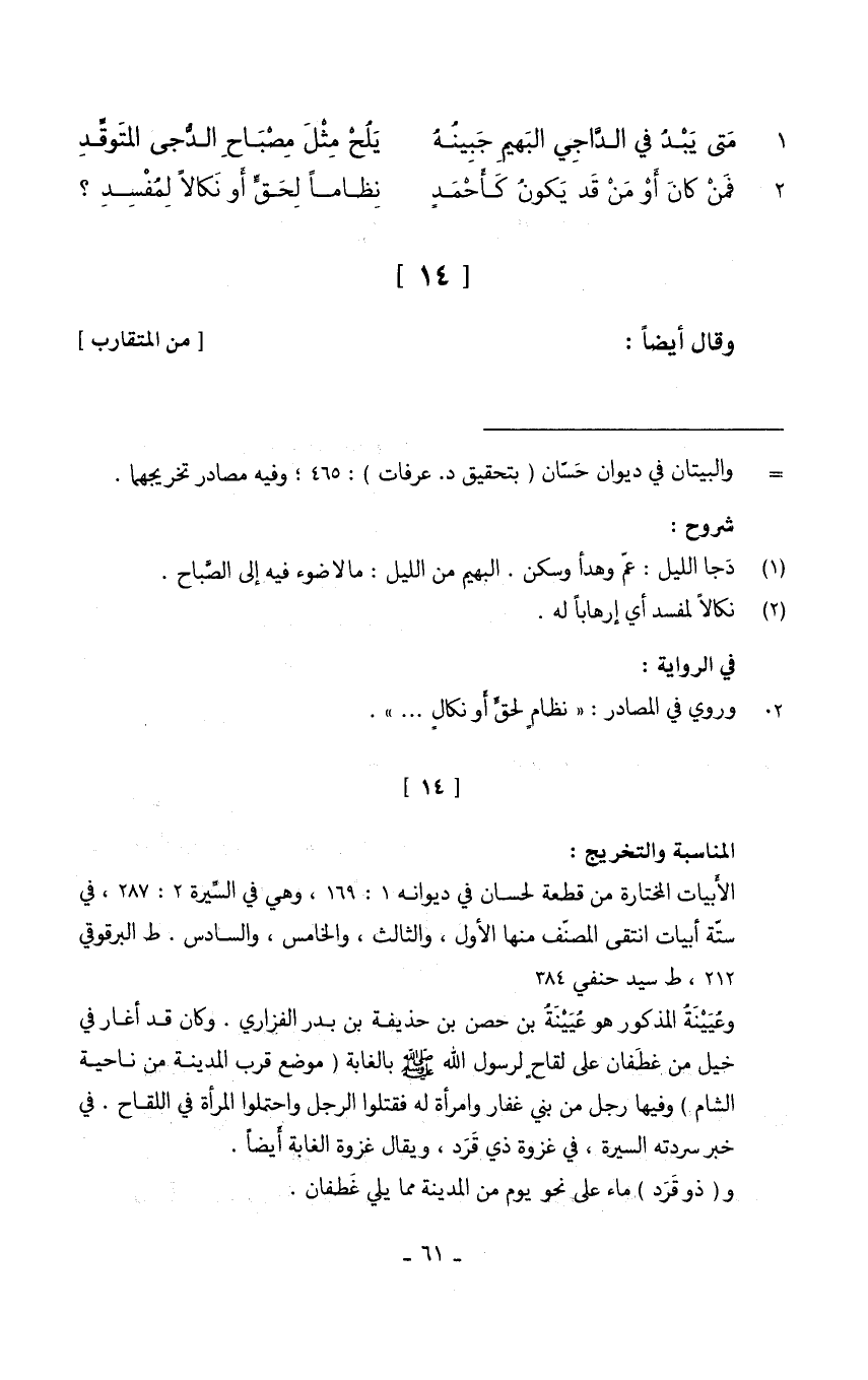 14 - وَقَالَ أَيْضا // (من المتقارب) //