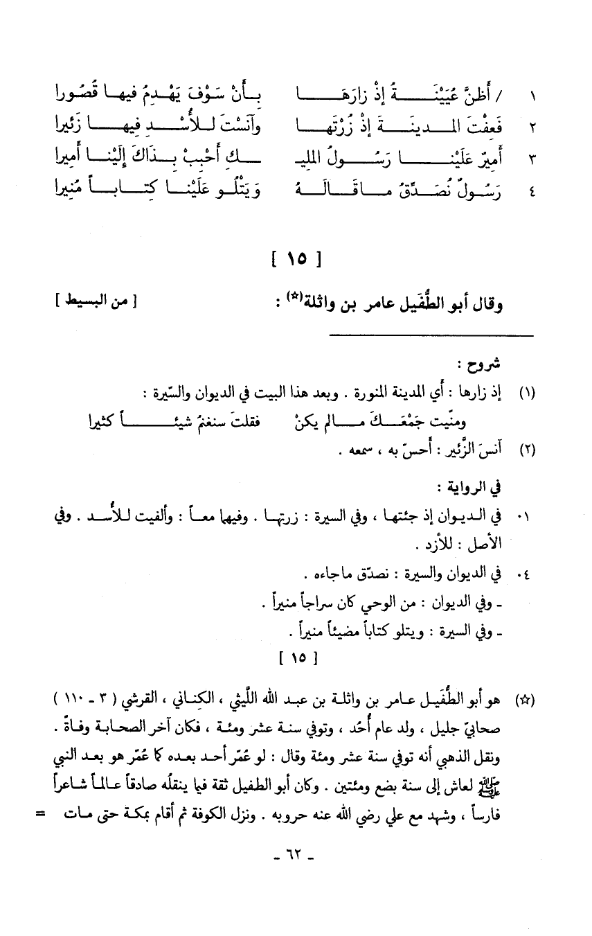 15 - وَقَالَ أَبُو الطُّفَيْل عَامر بن وَاثِلَة // (من الْبَسِيط) //