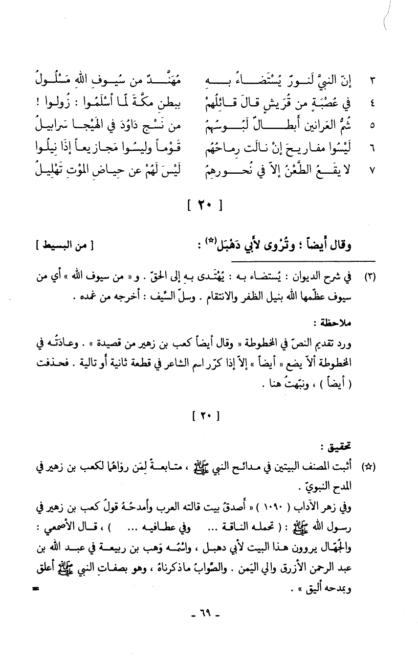 (إِن النَّبِي لنورٌ يستضاء بِهِ ... مهندٌ من سيوف الله مسلول)