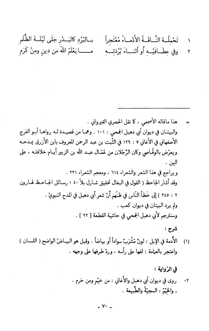 (تحمله النَّاقة الأدماء معتجراً ... بالبرد كالبدر جلى لَيْلَة الظُّلم)