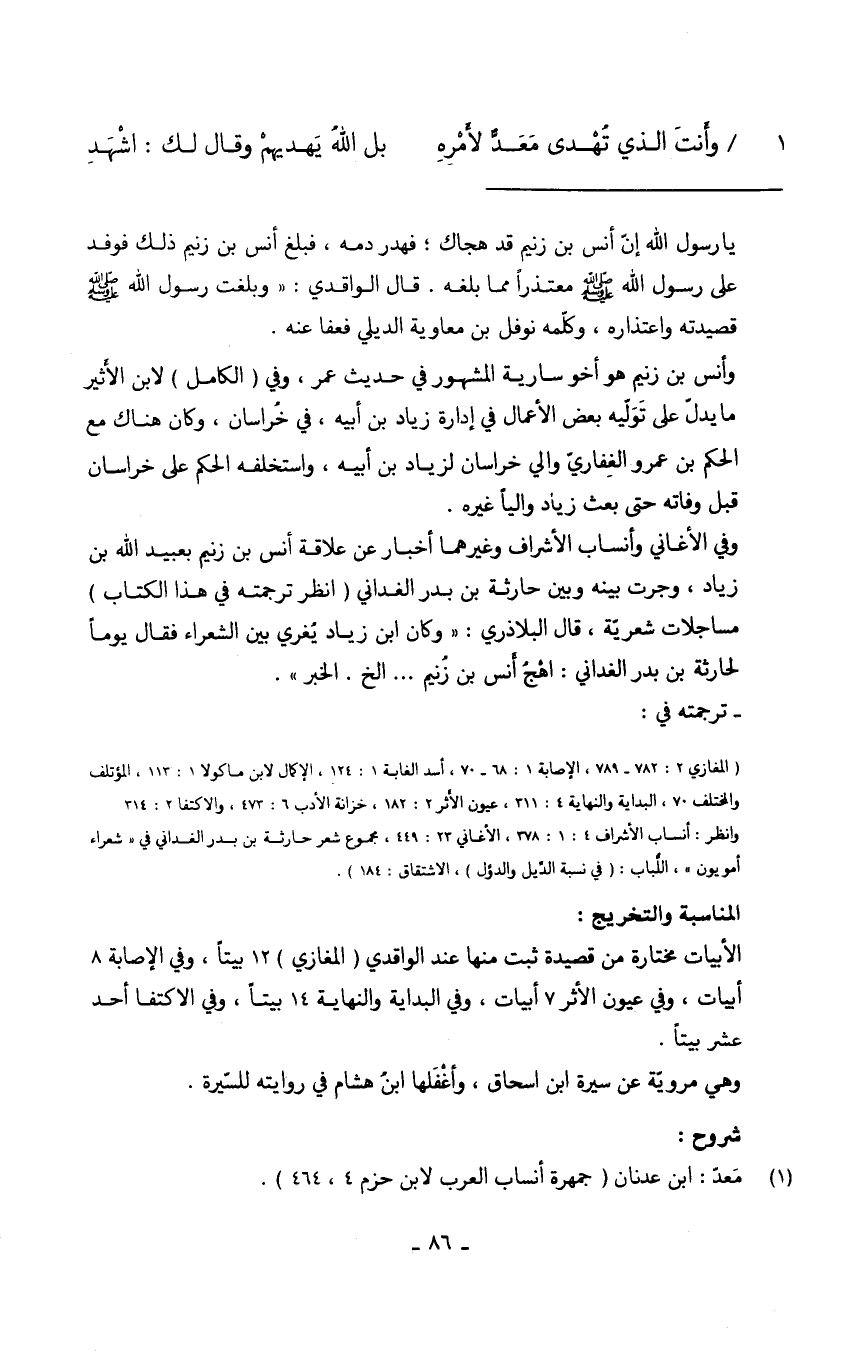(وَأَنت الَّذِي تهدي معد لأَمره ... بل الله يهْدِيهم وَقَالَ لَك اشْهَدْ)