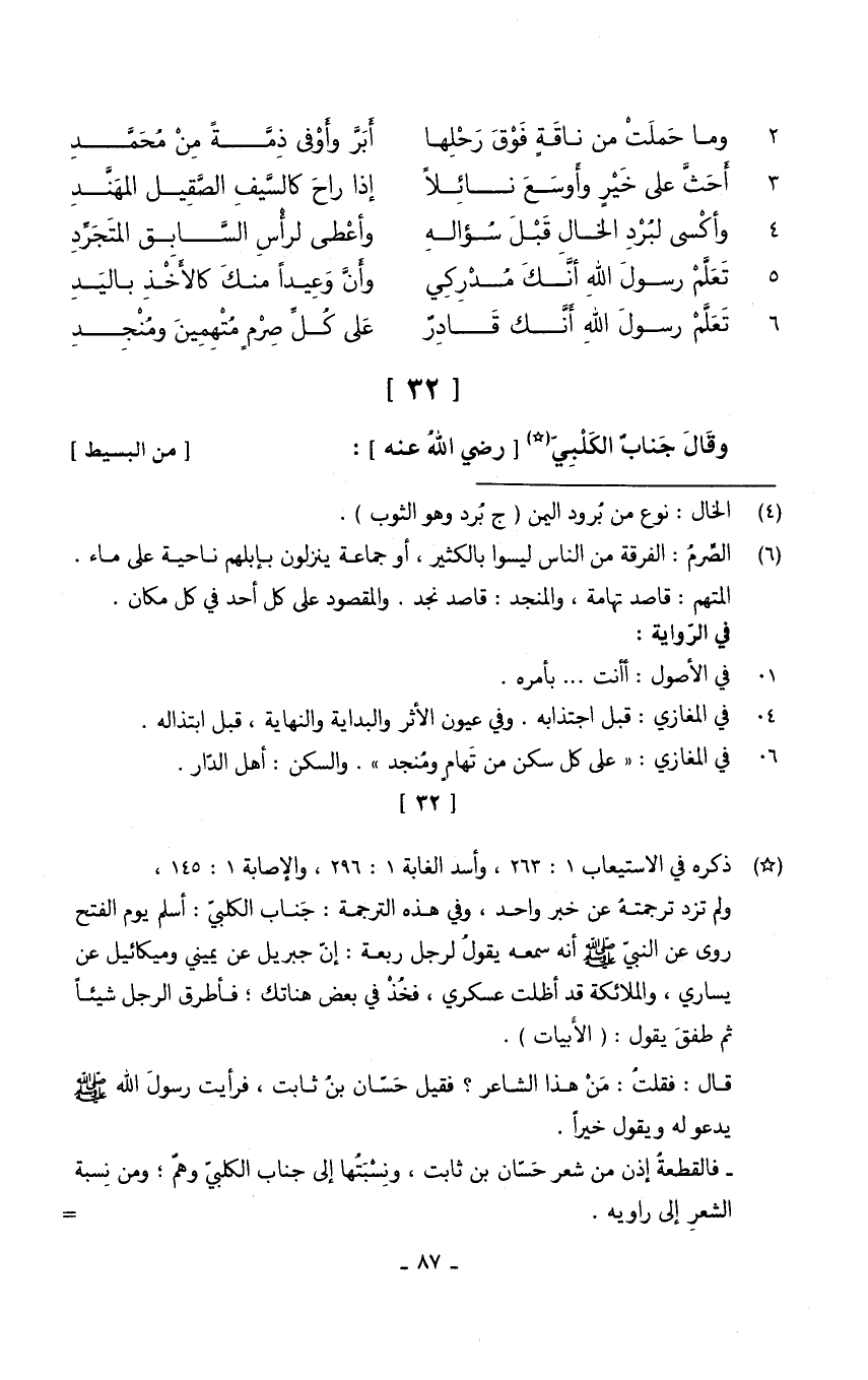 وَقَالَ جناب الْكَلْبِيّ رَضِي الله عَنهُ // (من الْبَسِيط) //