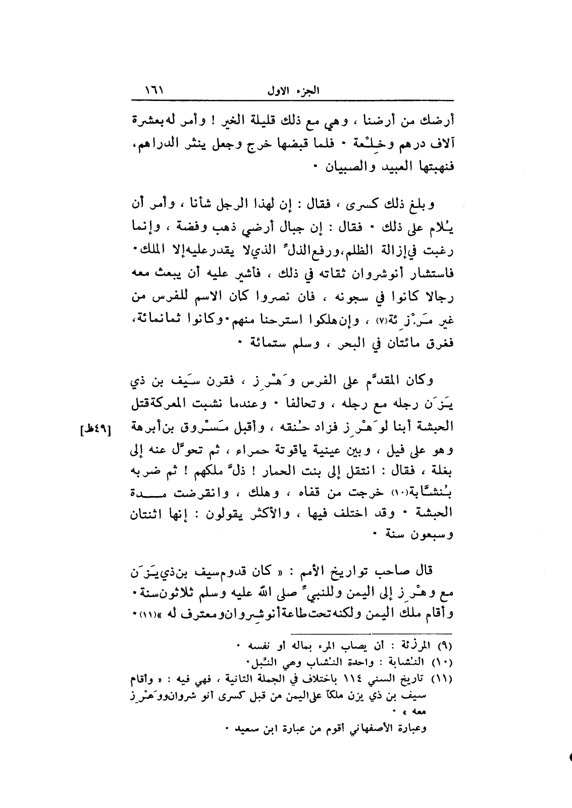 قال صاحب تواريخ الأمم: "كان قدوم سيف بن ذي يزن مع وهرز إلى اليمن وللنبي صلى الله عليه وسلم ثلاثون سنة. وأقام ملك اليمن ولكنه تحت طاعة أنوشروان ومعترف له".