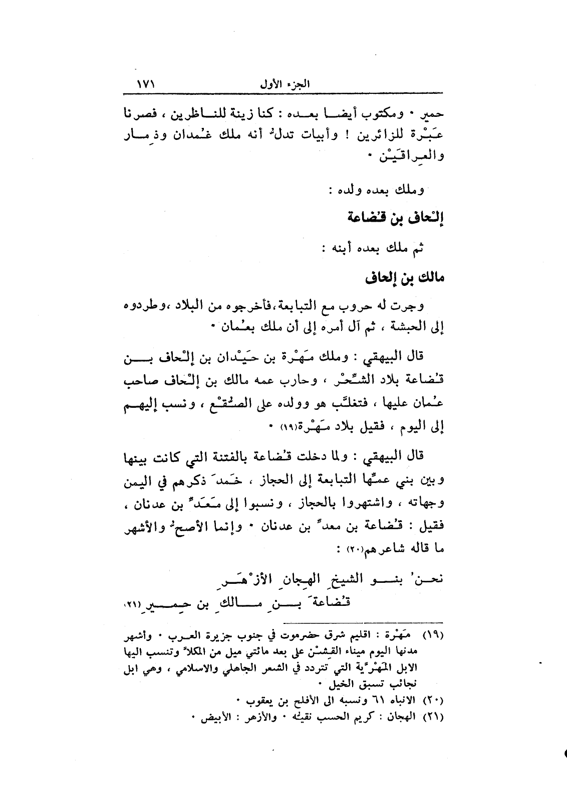 نحن بنو الشيخ الهجان الأزهر ... قضاعة بن مالك بن حمير