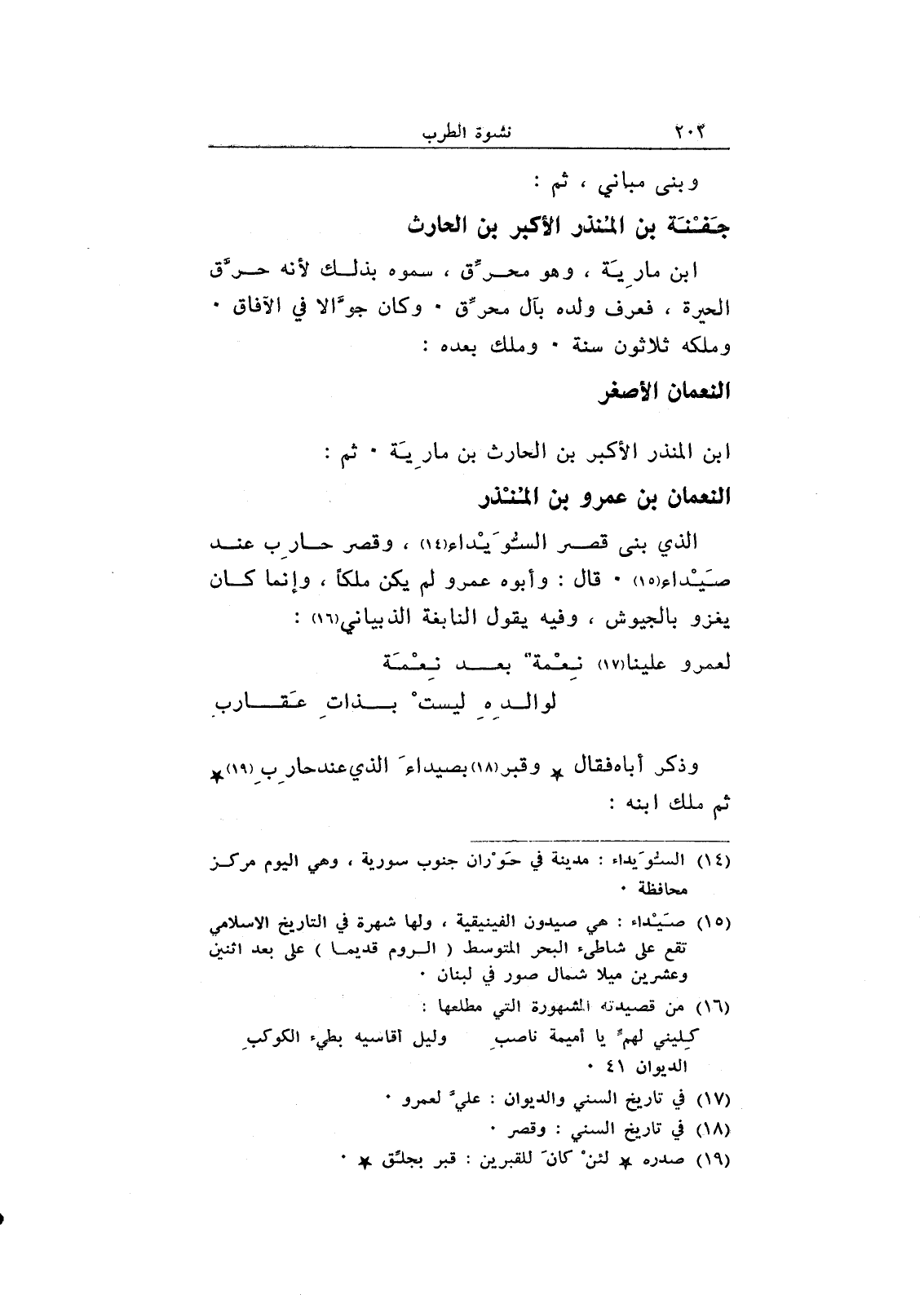الذي بنى قصر السويداء، وقصر حارب عند صيداء. قال: وأبوه عمرو لم يكن ملكاً، وإنما كان يغزو بالجيوش، وفيه يقول النابغة الذبياني: