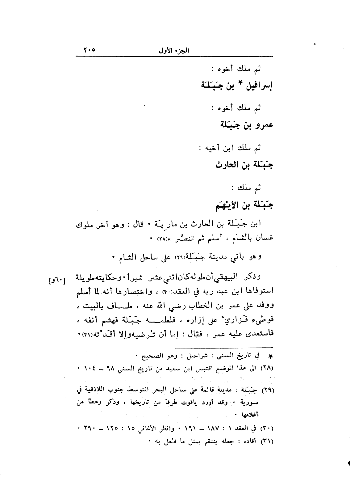 ابن جبلة بن الحارث بن مارية. قال: وهو آخر ملوك غسان بالشام، أسلم ثم تنصر".