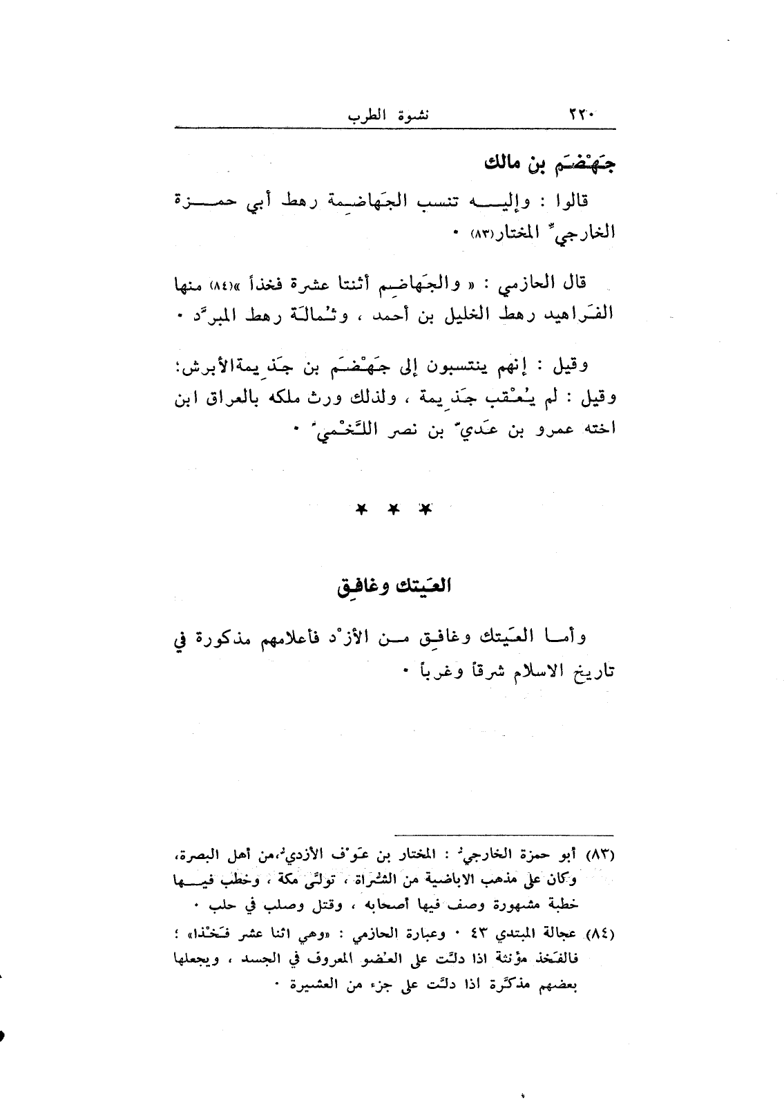 وأما العيتك وغافق من الأزد فأعلامهم مذكورة في تاريخ الإسلام شرقاً وغرباً.