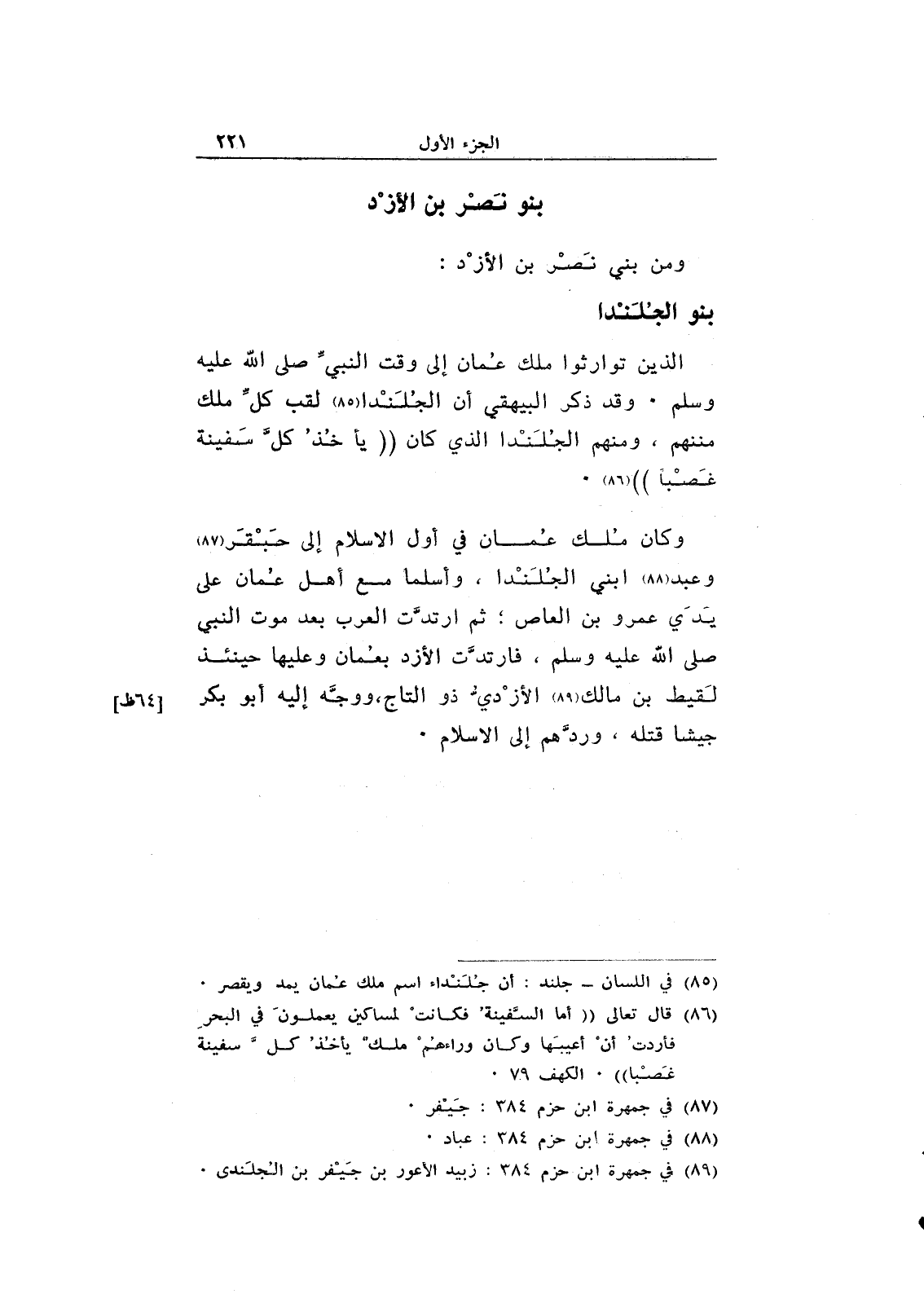 وكان ملك عمان في أول الإسلام إلى حبقر وعبد ابني الجلندا، وأسلما مع أهل عمان على يدي عمرو بن العاص؛ ثم ارتدت العرب بعد موت النبي صلى الله عليم وسلم، فارتدت الأزد بعمان وعليها حينئذ لقيط بن مالك الأزدي ذو التاج، ووجه إليه أبو بكر جيشاً قتله، وردهم إلى الإسلام.