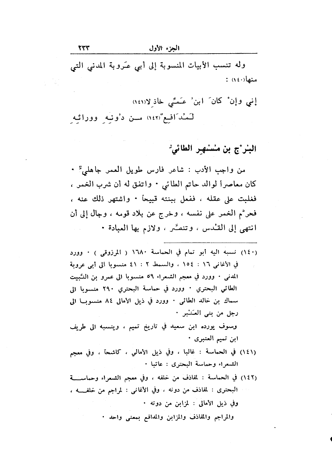 من واجب الأدب: شاعر فارسي طويل العمر جاهلي. كان معاصراً لوالد حاتم الطائي. واتفق له أن شرب الخمر، فعلبت على عقله، ففعل ببنته قبيحاً. واشتهر ذلك عنه، فحرم الخمر على نفسه، وخرج عن بلاد قومه، وجال إلى أن انتهى إلى القدس، وتنصر، ولازم بها العبادة.