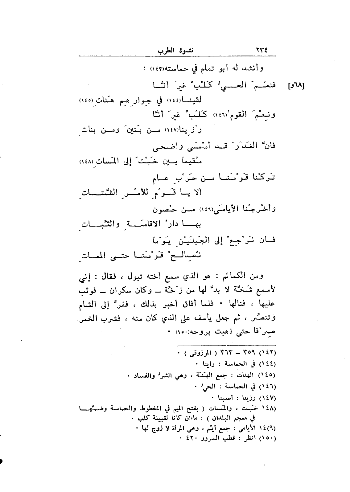 فنعم الحي كلب غير أنا ... لقينا في جوارهم هنات