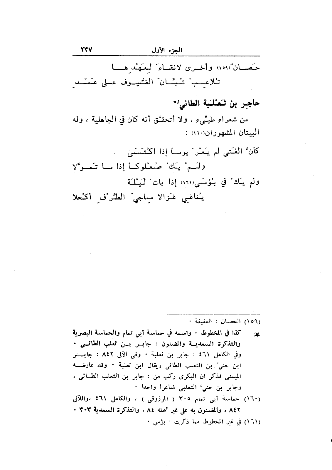 من شعراء طيء، ولا أتحقق أنه كان في الجاهلية، وله البيتان المشهوران: