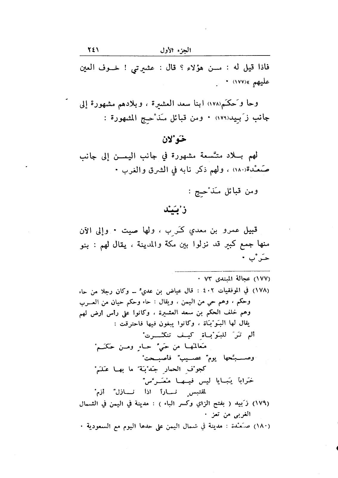 قبيل عمرو بن معدي كرب، ولها صيت. وإلى الآن منها جمع كبير قد نزلوا بين مكة والمدينة، يقال لهم: بنو حرب.
