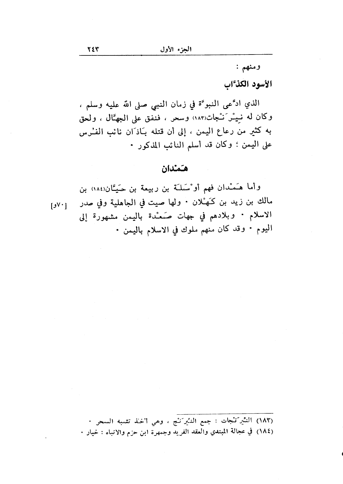 الذي ادعى النبوة في زمان النبي صلى الله عليه وسلم، وكان له نير نجات وسحر، فنفق على الجهال، ولحق به كثير من رعاع اليمن، إلى أن قتله باذان نائب الفرس على اليمن؛ وكان قد أسلم النائب المذكور.