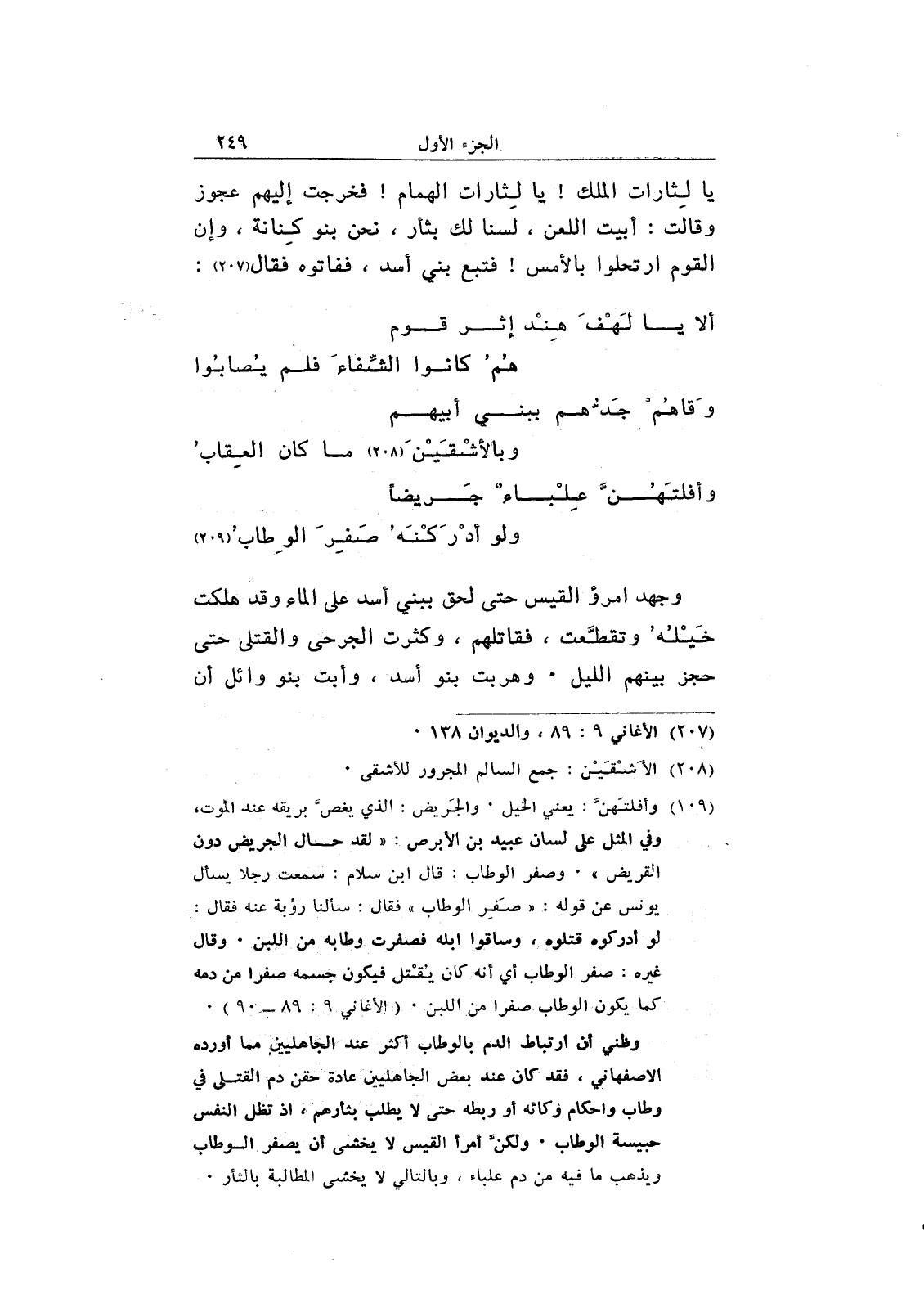 يا لثارات الملك! يا لثارات الهمام! فخرجت إليهم عجوز وقالت: أبيت اللعن، لسنا لك بثأر، نحن بنو كنانة، وإن القوم ارتحلوا بالأمس! فتبع بني أسد، ففاتوه فقال: