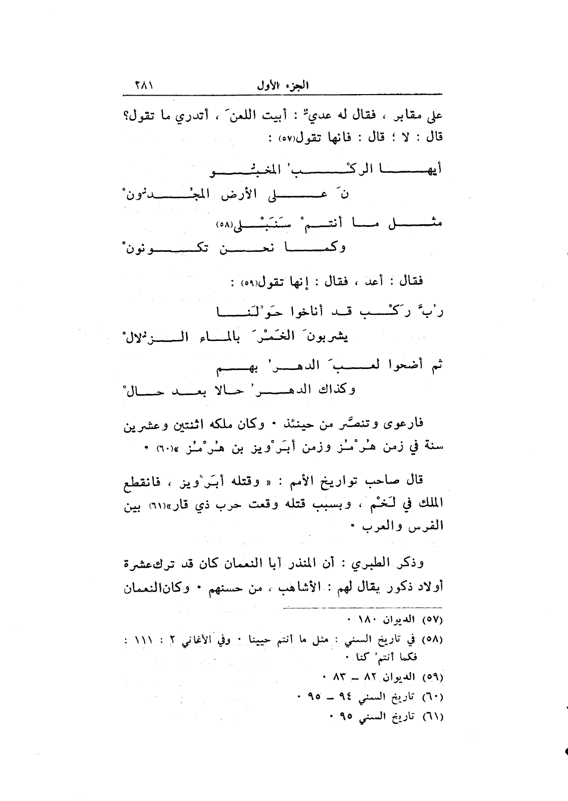 فارعوى وتنصر من حينئذ. وكان ملكه اثنتين وعشرين سنة في زمن هرمز وزمن أبرويز بن هرمز".