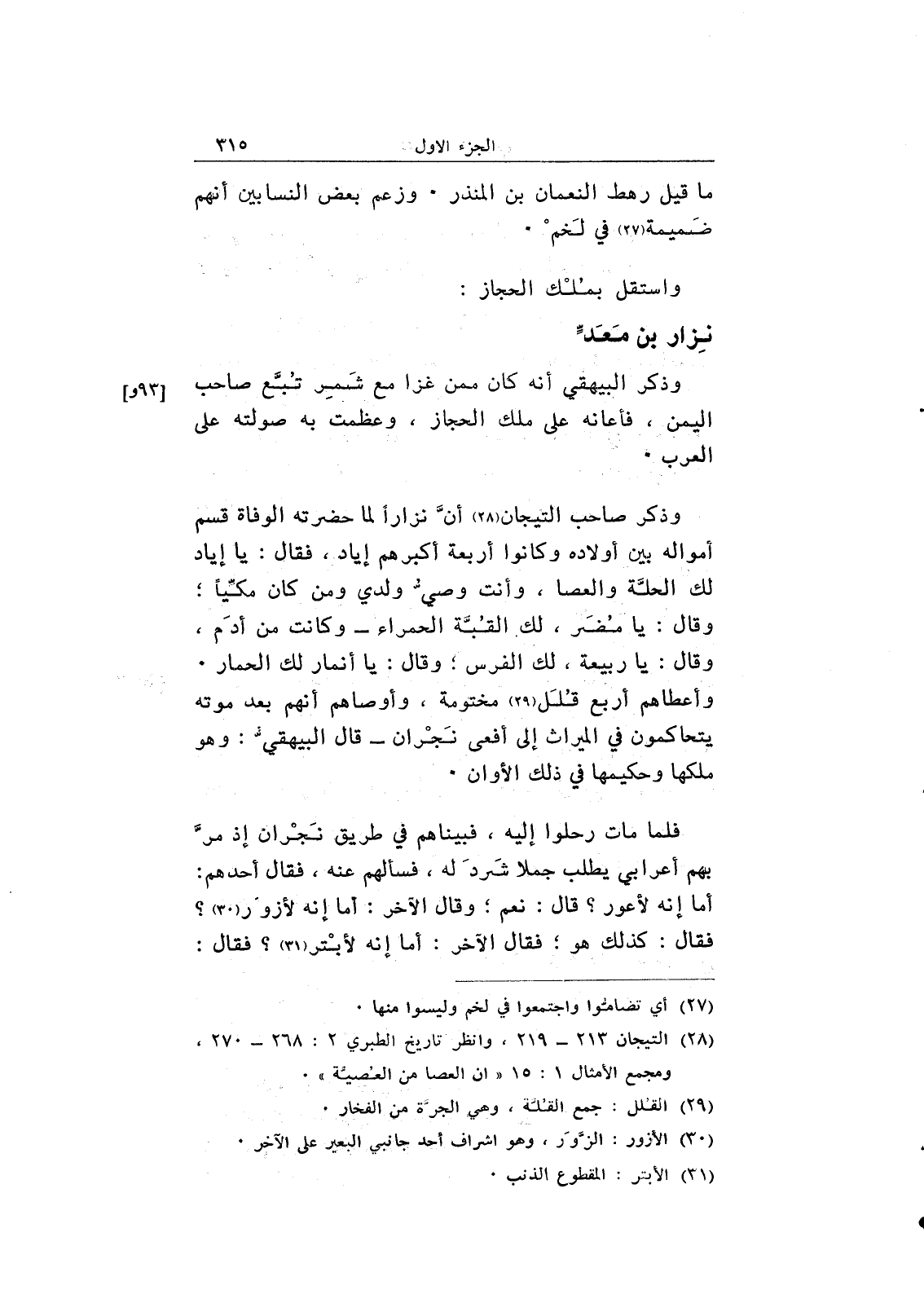 فلما مات رحلوا إليه، فبينا هم في طريق نجران إذ مر بهم أعرابي يطلب جملا شرد له، فسألهم عنه، فقال أحدهم: أما إنه لأعور؟ قال: نعم؛ وقال الآخر: أما إنه لأزور؟ فقال: كذلك هو؛ فقال الآخر: أما إنه لأبتر؟ فقال: