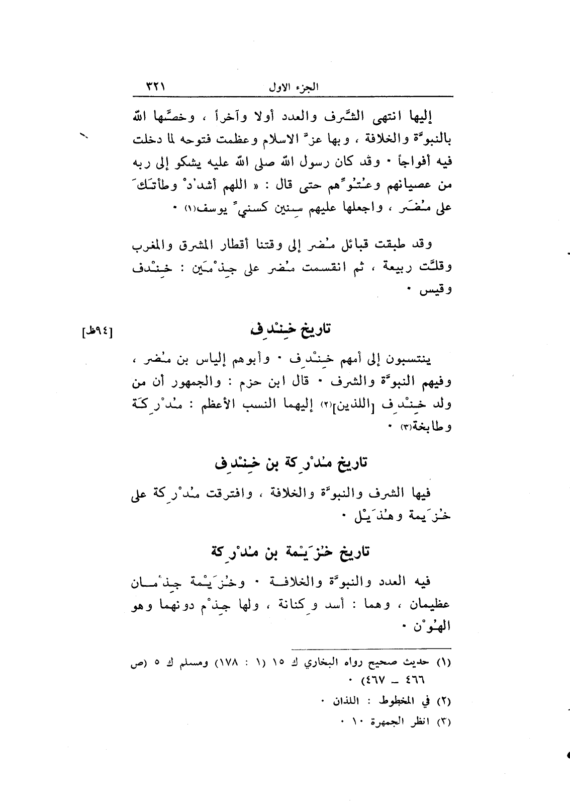 إليها انتهى الشرف والعدد أولاً وآخراً، وخصها الله بالنبوة والخلافة، وبها عز الإسلام وعظمت فتوحه لما دخلت فيه أفواجاً. وقد كان رسول الله صلى الله عليه يشكو إلى ربه من عصيانهم وعتوهم حتى قال: "اللهم أشدد وطأتك على مضر، واجعلها عليهم سنين كسني يوسف.