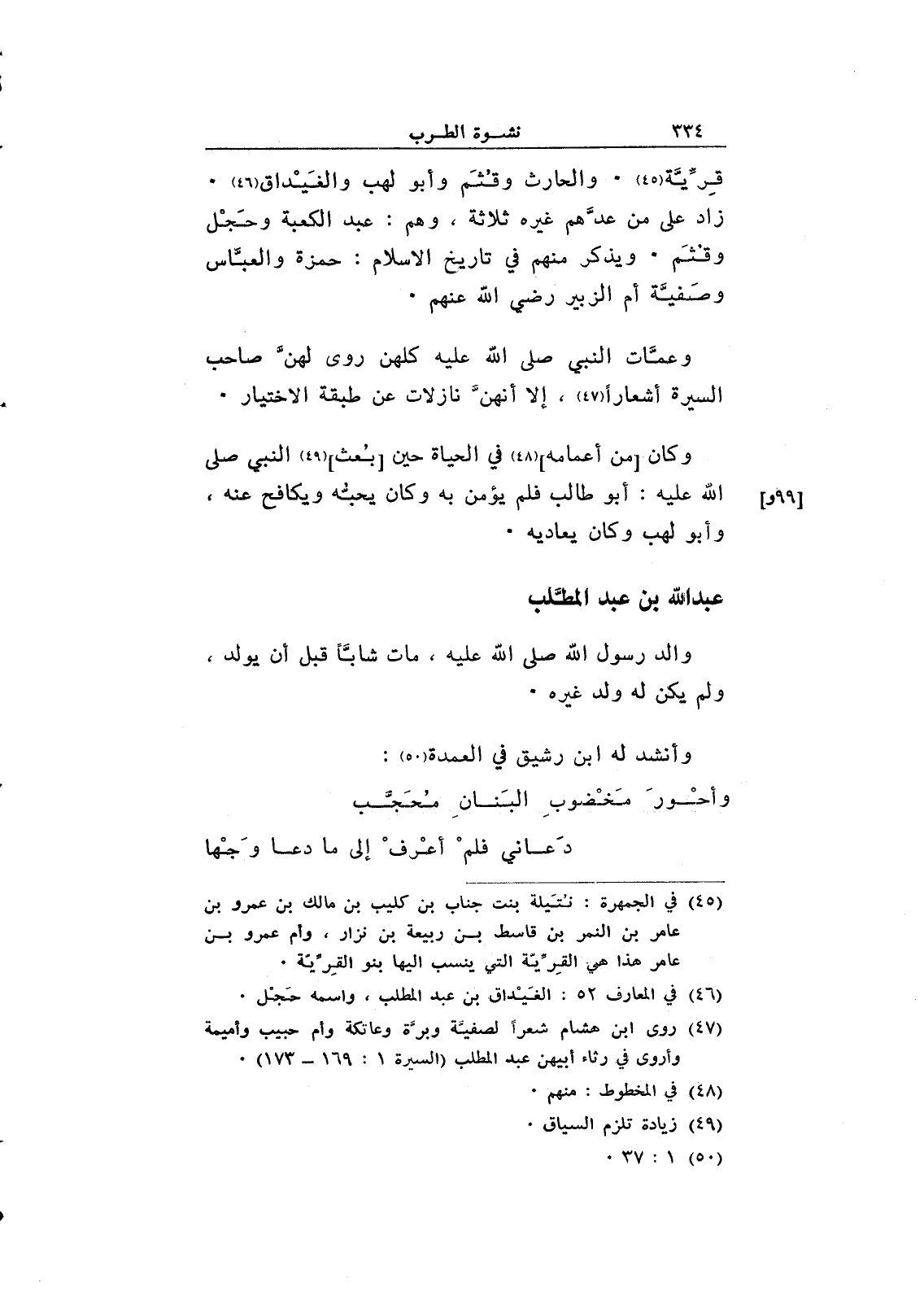 قرية. والحارث وقثم وأبو لهب والغيداق. زاد على من عدهم غيره ثلاثة، وهم: عبد الكعبة وحجل وقثم. ويذكر منهم في تاريخ الإسلام: حمزة والعباس وصفية وأبو الزبير رضي الله عنهم.