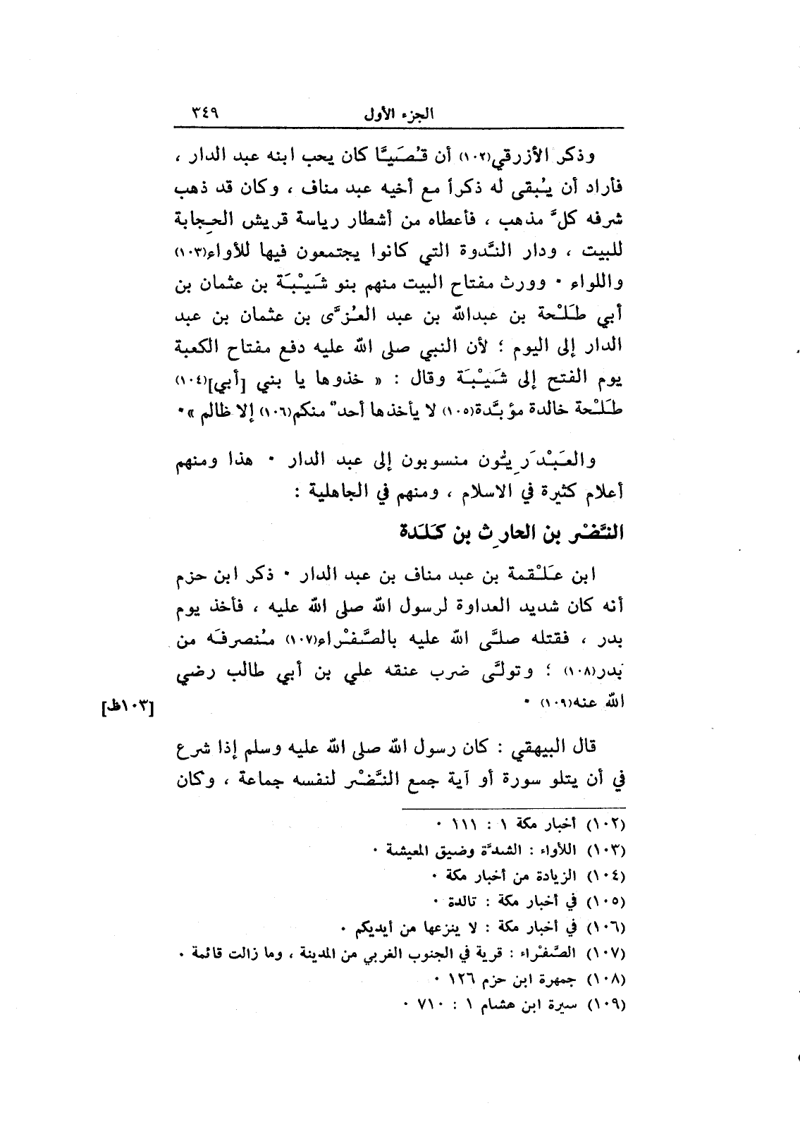 قال البيهقي: كان رسول الله صلى الله عليه وسلم إذا شرع في أن يتلو سورة أو آية جمع النضر لنفسه جماعة، وكان