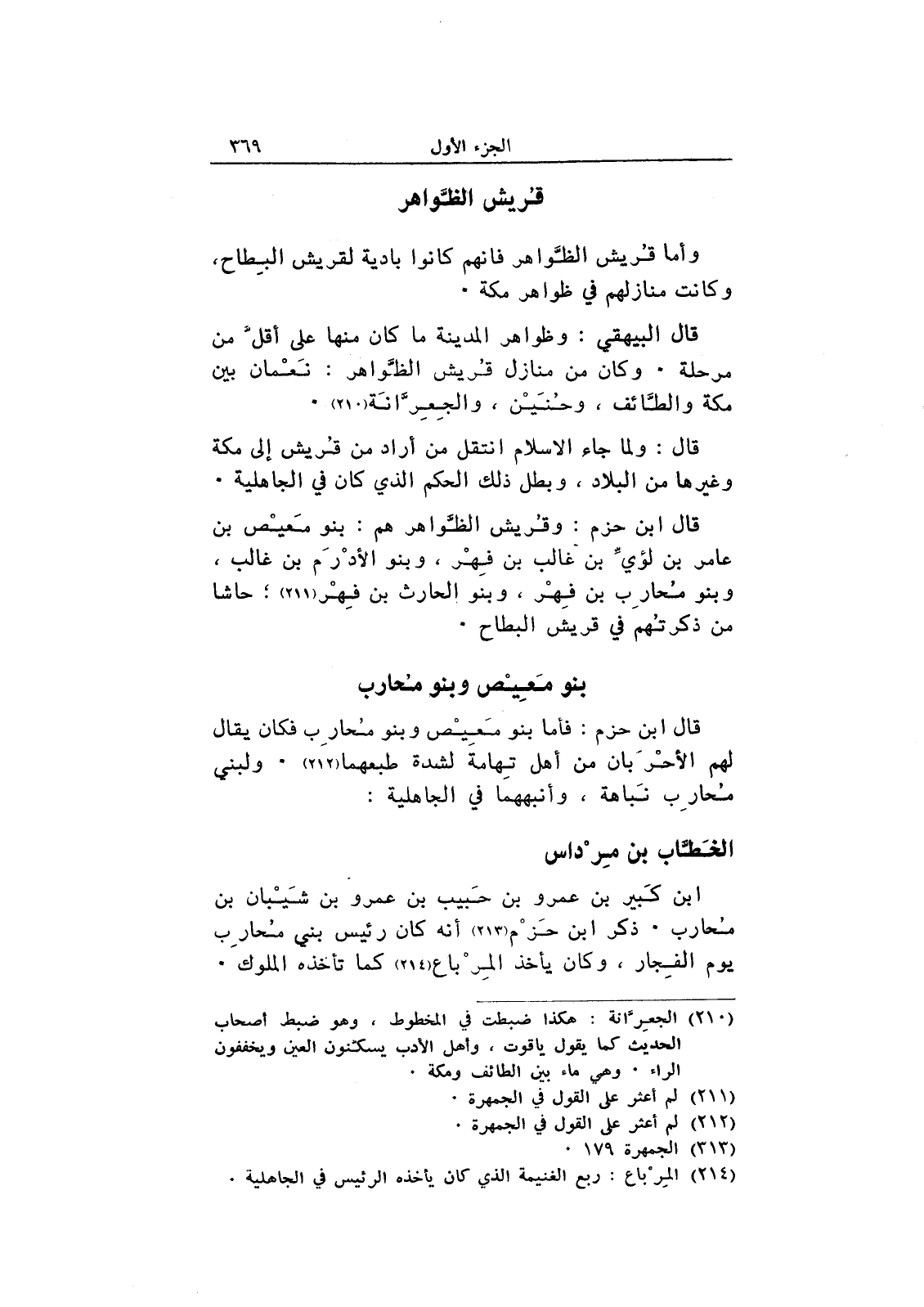 وبنو الأدرم بن غالب، وبنو محارب بن فهر، وبنو الحارث بن فهر؛ حاشا من ذكرتهم في قريش البطاح.
