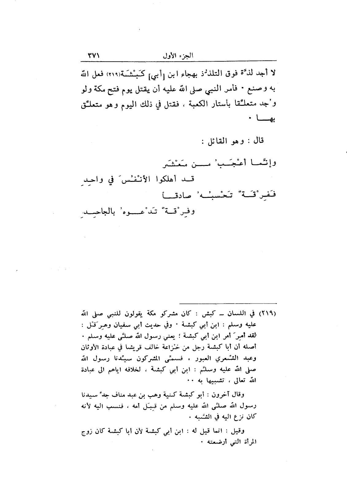 لا أجد لذة فوق التلذذ بهجاء ابن [أبي] كبشة فعل الله به وصنع. فأمر النبي صلى الله عليه أن يقتل يوم فتح مكة ولو وجد متعلقاً بأستار الكعبة، فقتل في ذلك اليوم وهو متعلق بها.