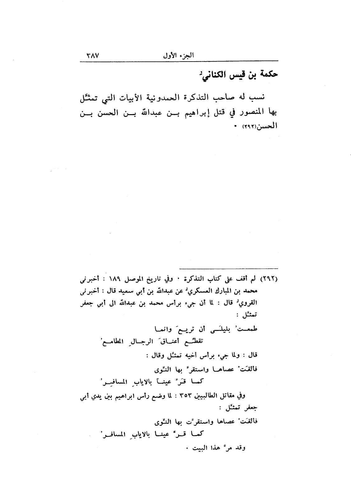 نسب له صاحب التذكرة الحمدونية الأبيات التي تمثل بها المنصور في قتل إبراهيم بن عبد الله بن الحسن بن الحسن.