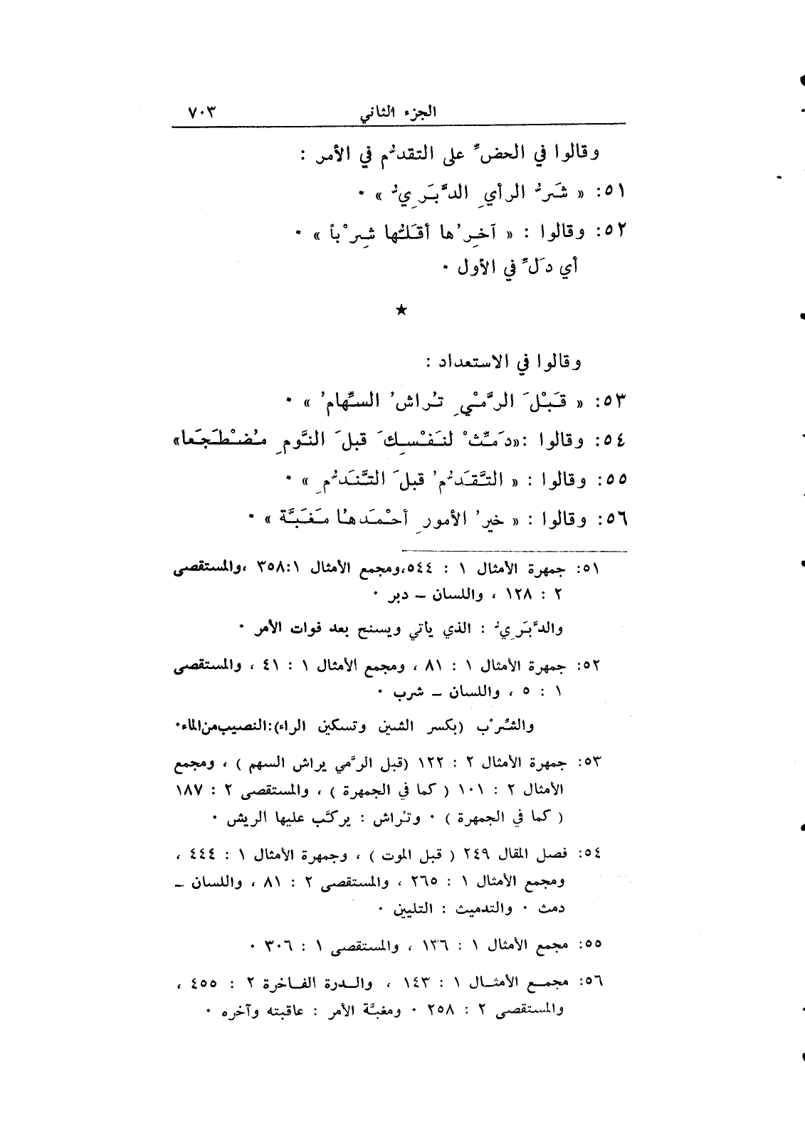 وقالوا في الحضن على التقدم في الأمر: 51: "شر الرأي الدبري".
