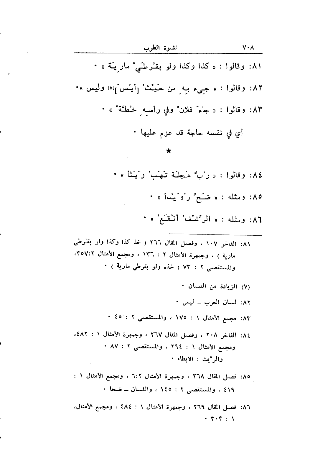 83: وقالوا: "جاء فلان وفي رأسه خطة".