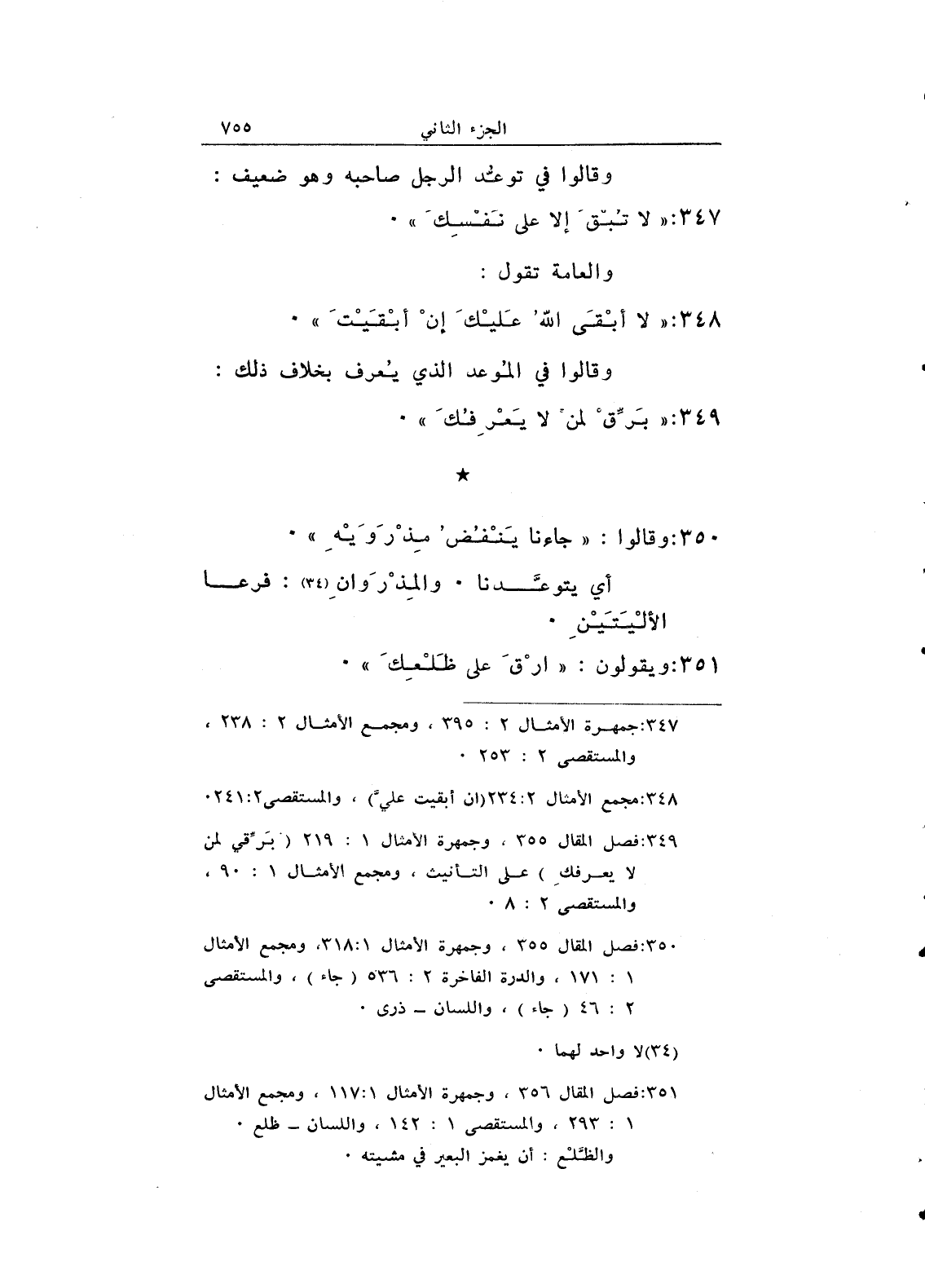 والعامة تقول: 348: "لا أبقى الله عليك إن أبقيت".