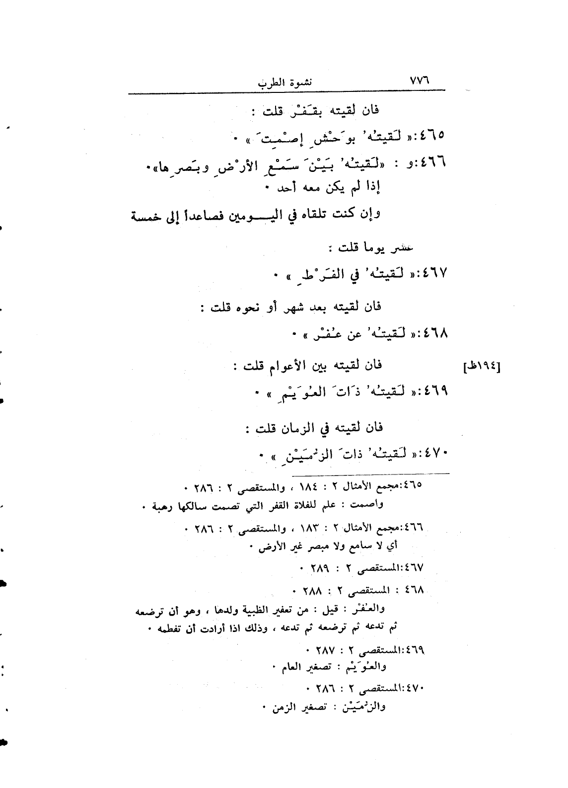 وإن كنت تلقاه في اليومين فصاعداً إلى خمسة عشر يوماً قلت: 467: "لقيته في الفرط".