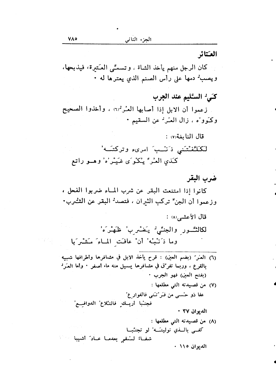 كان الرجل منهم يأخذ الشاة. وتسمى العتيرة، فيذبحها، ويصب دمها على رأس الصنم الذي يعترها له.
