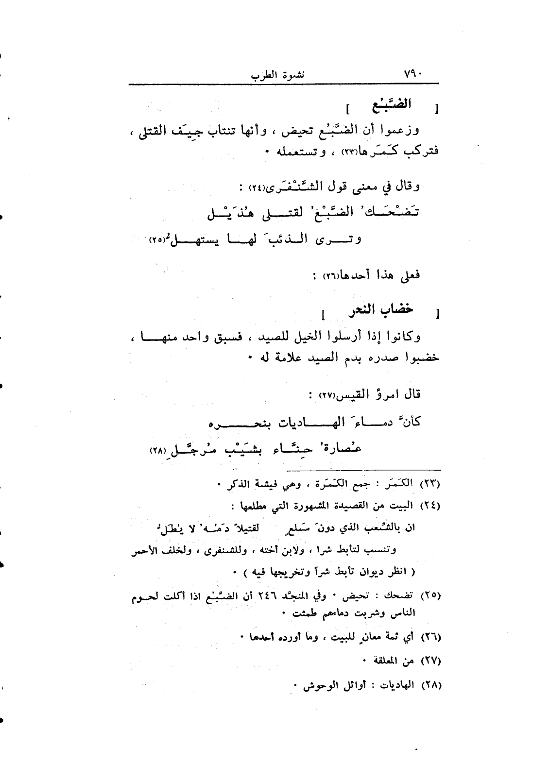 وزعموا أن الضبع تحيض، وأنها تنتاب جيف القتلى، فتركب كمرها، وتستعمله.
