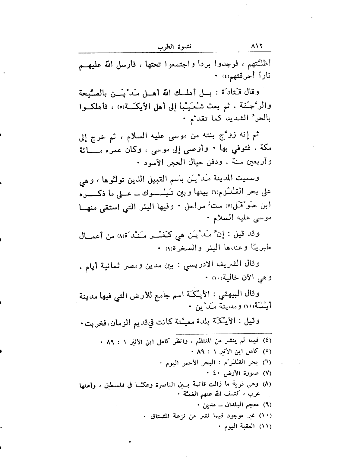 وسميت المدينة مدين باسم القبيل الذين تولوها، وهي على بحر القلزم بينها وبين تبوك _ على ما ذكر ابن حوقل ست مراحل. وفيها البئر التي استقى منها موسى عليه السلام.