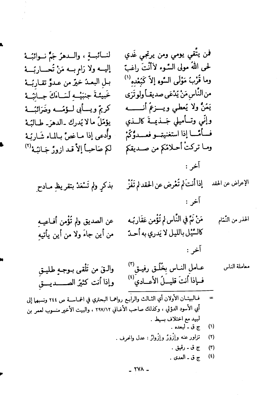 من الناس من يدعى صديقاً ولو ترى ... خبيئة جنبيه لساءك جانبه