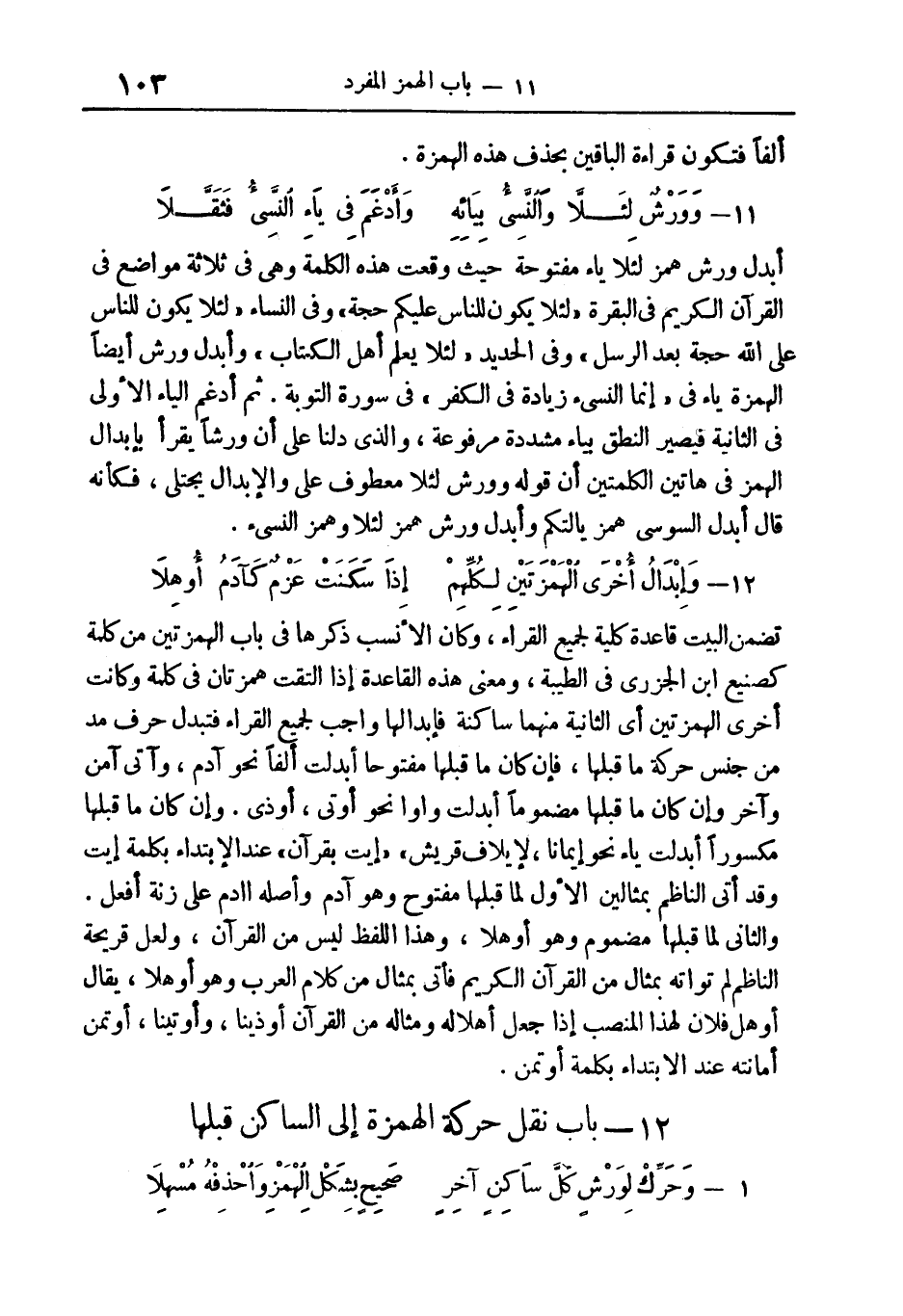 12 باب نقل حركة الهمزة إلى الساكن قبلها [226 - 234]
