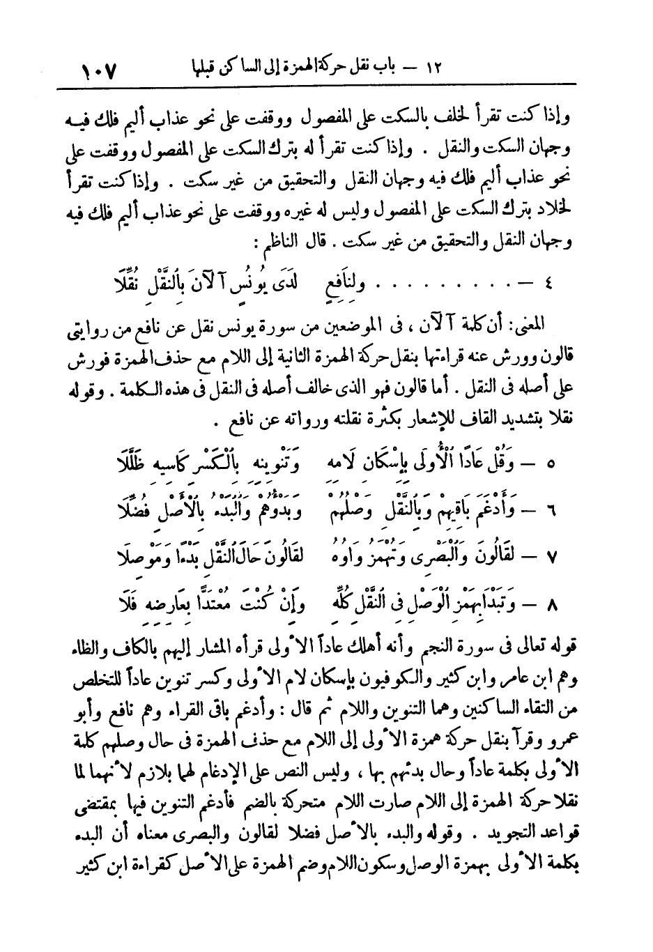 232 - لقالون والبصري وتهمز واوه ... لقالون حال النّقل بدءا وموصلا